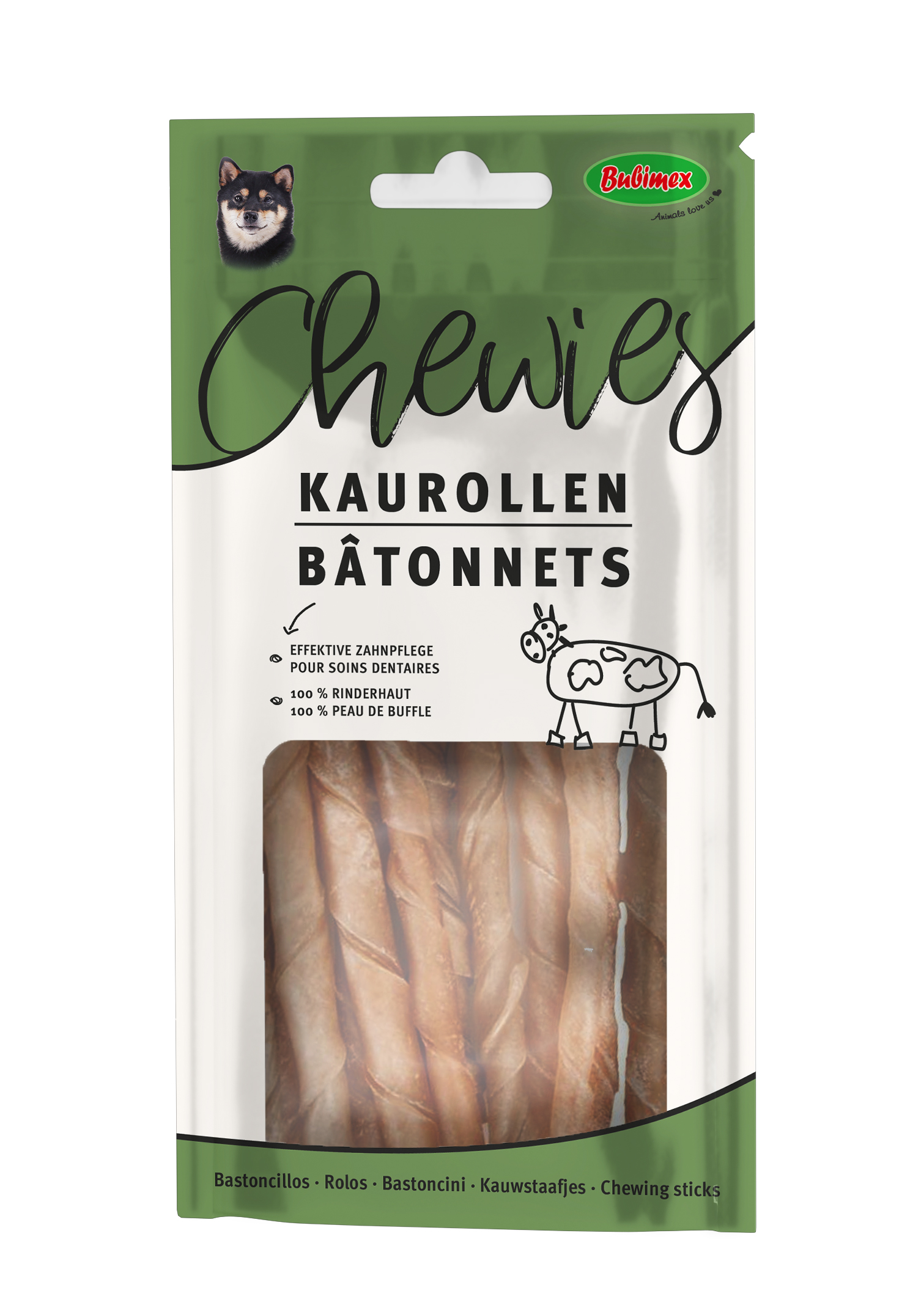 Die Kaurollen aus Rinderhaut befriedigen das natürliche Kaubedürfnis Ihres Hundes und unterstützen gleichzeitig die Zahnpflege.