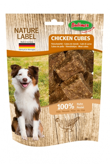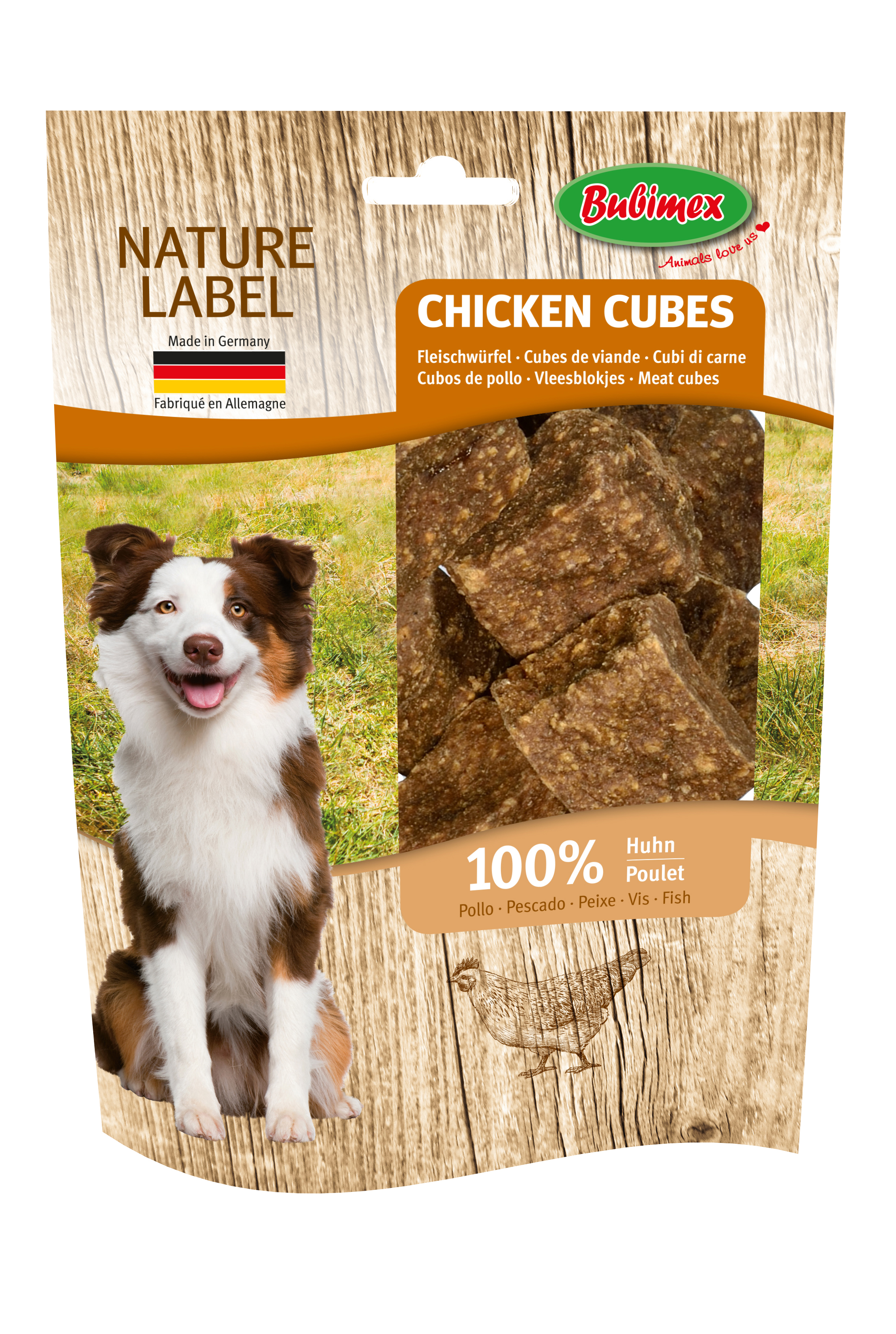 BUBIMEX Chicken Cubes sind der artgerechte Snack für zwischendurch – insbesondere für ernährungssensible Hunde und Allergiker. Chicken Cubes bestehen aus einer einzigen Proteinquelle ohne Getreidezusätze und sind ohne Zusatz von Konservierungs-, Farb- und Aromastoffen. Fütterungsempfehlung: Als Snack zusätzlich zu den Mahlzeiten. Für das Wohlergehen Ihres Haustiers muss sauberes Trinkwasser jederzeit verfügbar sein. Kühl und trocken lagern.