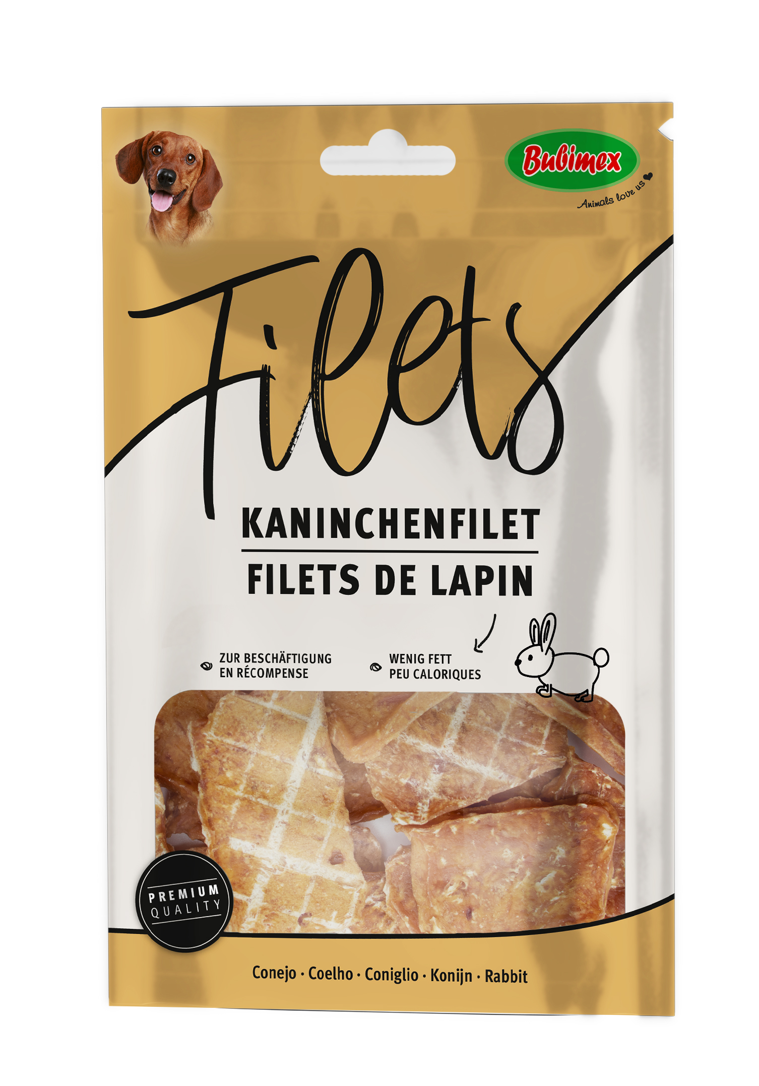 Verwöhnen Sie Ihren Hund mit diesen leckeren Snacks aus Kaninchenfilet. BUBIMEX Kaninchenfilets sind besonders fettarm (nur 2 % Fett) und reich an lebenswichtigen Proteinen. Fütterungsempfehlung: Als Snack zusätzlich zu den Mahlzeiten. Bitte stellen Sie immer frisches Trinkwasser bereit.