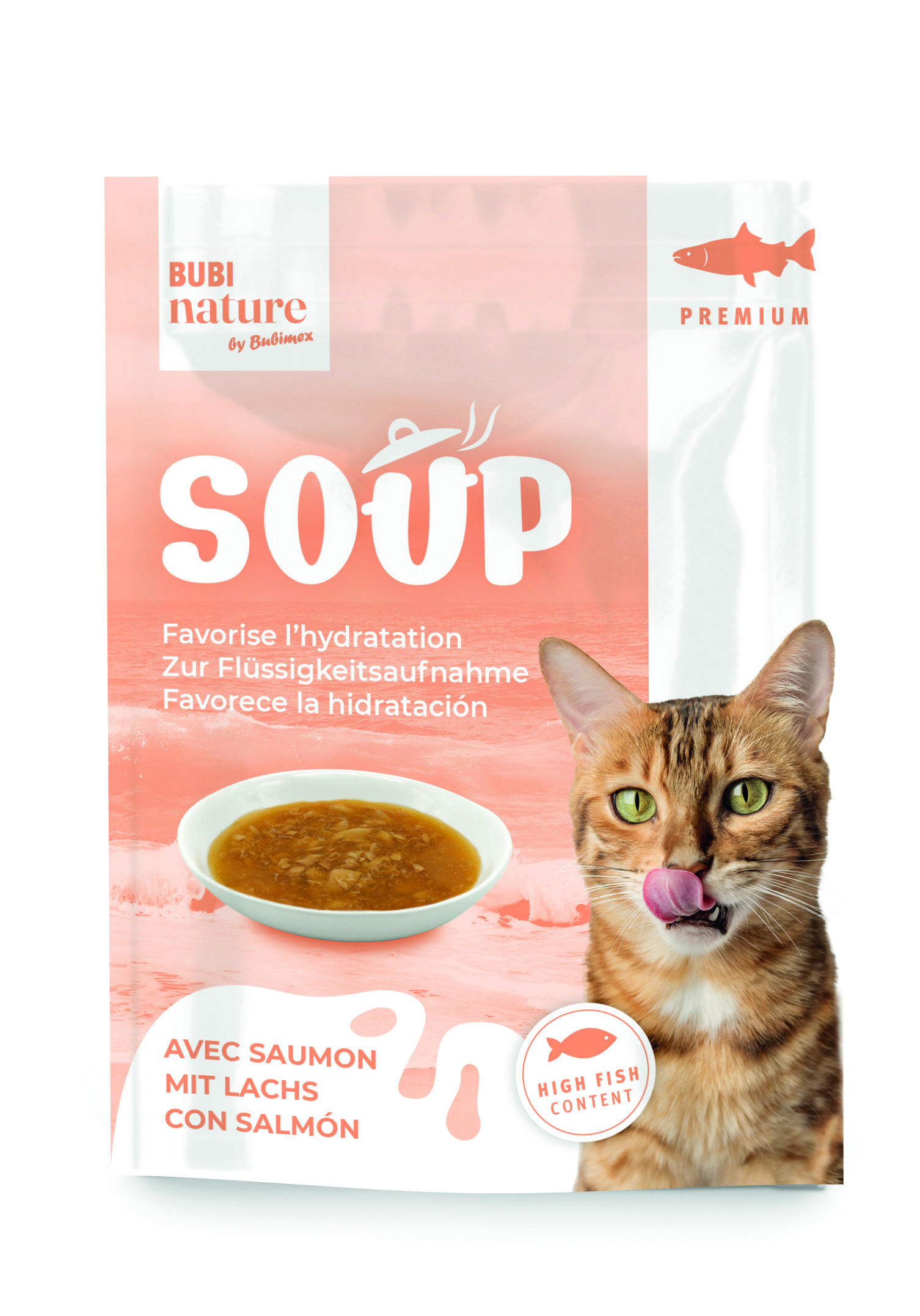 Schenken Sie Ihrer Katze einen besonderen Genussmoment: Bubinature ist eine köstliche Suppe auf Basis von Fischfiletbrühe, die die Flüssigkeitsaufnahme Ihrer Katze fördert und gleichzeitig ihren Gaumen verwöhnt.
